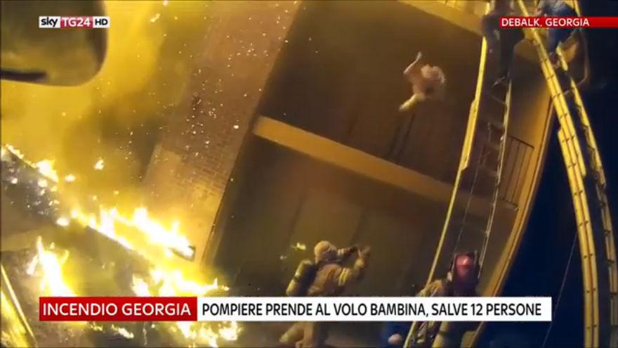 Incendio Georgia, pompiere prende al volo bimba