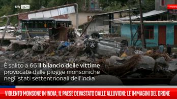 È salito a 66 il bilancio delle vittime provocate dalle piogge monsoniche negli stati settentrionali dell'india. Le riprese effettuate da un drone a Manali, nel nord del Paese, mostrano le dimensioni dei danni provocati dalle frane e dalle inondazioni. Le autorità locali riferiscono che le forti precipitazioni hanno causato il crollo di ponti e l'interruzione di strade. Centinaia di villaggi rimasti isolati per la mancanza di elettricità. Nella capitale sono caduti 153 millimetri in 24 ore, un quantitativo registrato solo due volte negli ultimi 20 anni. Una delle regioni più colpite è lo stato himalayano dell'Himachal Pradesh, dove il governatore Sukhwinder Singh ha fatto sapere di avere evacuato 50mila turisti nelle ultime 48 ore. Scuole chiuse fino a domenica, e i dipendenti pubblici sono stati invitati a lavorare da casa. Le autorità hanno evacuato dalle abitazioni vicine al fiume quasi 15 mila persone. .