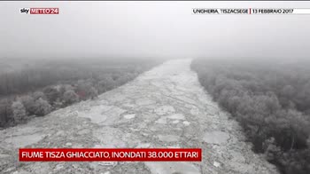 Lastroni di ghiaccio sul fiume Tisza in Ungheria