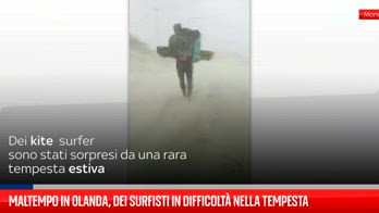 Dei kite surfer nel villaggio costiero di Wijk aan Zee, nella provincia dell'Olanda Settentrionale, sono stati sorpresi da una rara tempesta estiva che ha colpito i Paesi Bassi questo mercoledì. Raffiche di vento hanno costretto il gruppo a ritornare con fatica alla macchina. Messi anche in difficoltà dalle tavole, nel video si vede un ragazzo che cerca di contrastare la forza del vento che sposta anche delle macchine in lontananza.