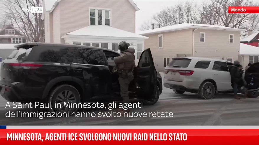A Saint Paul, in Minnesota, circa una mezza dozzina di agenti dell’ICE si sono introdotti armati in un’abitazione e hanno arrestato un uomo mentre indossava solo la biancheria intima e una coperta. Decine di persone hanno filmato la scena con i loro cellulari e hanno suonato i clacson in segno di protesta.