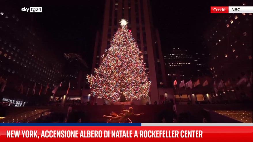 A New York una folla si è radunata a Rockefeller Center per assistere all’accensione dell’albero di Natale. L’albero, un abete rosso norvegese alto 23 metri, è stato decorato con 50.000 luci LED multicolori e sormontato da una stella di cristallo Swarovski da 400 chili.