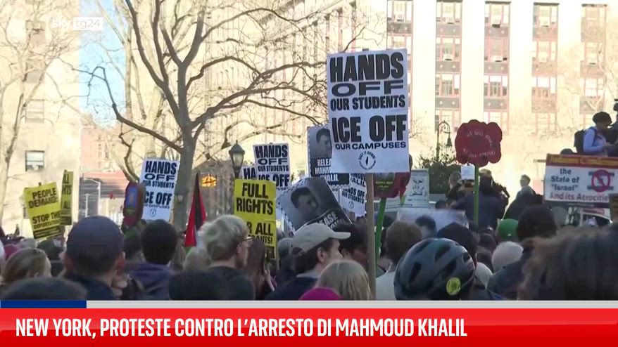 A New York, centinaia di persone hanno manifestato contro l'arresto di Mahmoud Khalil, studente della Columbia University. Arrestato l'8 marzo davanti alla moglie incinta, gli agenti hanno motivato l'azione con la revoca del visto. Khalil e i suoi legali sostengono che l'arresto è stato una ritorsione per le sue critiche al governo Usa .