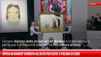 Un raro dipinto dello street artist Banksy è stato è stato battuto all'asta da Sotheby's a Londra per quasi 4,3 milioni di sterline, oltre 5 milioni di euro.
