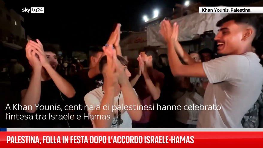 A Khan Younis, centinaia di palestinesi hanno celebrato l’intesa tra Israele e Hamas, primo passo del piano di pace promosso dal presidente USA Donald Trump per porre fine alla guerra di Gaza. Le persone si sono radunate vicino all’ospedale Nasser, applaudendo e cantando dopo due anni di conflitto. L’accordo, mediato in Egitto, prevede un cessate il fuoco e lo scambio di ostaggi.