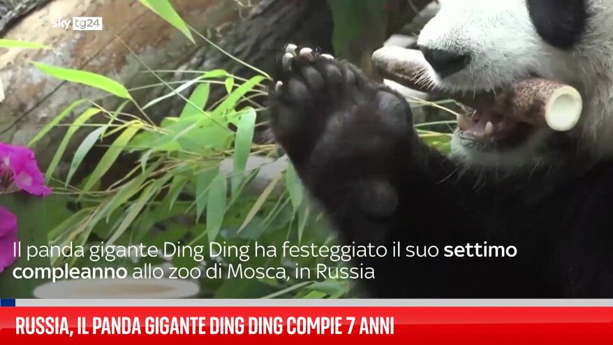 Il panda gigante Ding Ding ha festeggiato il settimo compleanno allo zoo di Mosca con un tavolo di bambù e una torta di frutta.