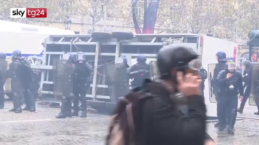 Parigi, gilet gialli in piazza: scontri sugli Champs Elysees