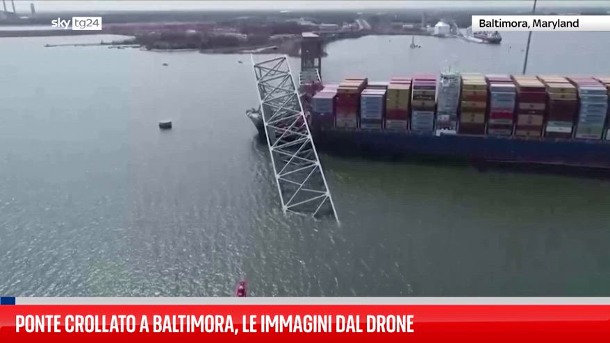 Il ponte di Baltimora accartocciato sulla nave cargo che l’ha colpito. Sono le immagini di un drone che fotografano la situazione dopo il crollo di uno dei ponti più lunghi e iconici d’America .
