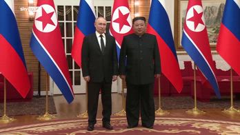 Istantanee da mostrare al mondo: Russia e Corea del Nord annunciano così la loro alleanza, firmando un trattato di cooperazione strategica. Prevede assistenza reciproca in caso di aggressione contro uno dei due Paesi come dichiarato da Vladimir Putin, secondo cui la Russia e la Corea del Nord perseguono una politica estera indipendente e "non accettano il linguaggio del ricatto e della dittatura", riferendosi anche alle sanzioni a cui entrambi si oppongono. La Corea del Nord fornisce alla Russia armi destinate alla guerra in Ucraina per ricevere energia in cambio. Tra le grandi parate della dittatura di Pyongyang, Kim Jong-un conosciuto nel mondo per i suoi missili, proclama che le relazioni tra i due Paesi stanno entrando in un’era di grande prosperità, paragonabili neppure a quelle dello scorso secolo. Kim, riferiscono le agenzie di Stato, ha espresso l’auspicio che “l’ardente amicizia tra i due popoli si rafforzi in modo monolitico”. L’incontro con le due delegazioni è durato un’ora e mezza, poi i leader si sono riuniti nella residenza di Kim per discutere le questioni "più importanti e più delicate". Tra note pomposa, nel culto della personalità delle grandi dittature, i Capi di Stato lanciano messaggi all’occidente. Kim loda il ruolo della Russia nel preservare l’equilibrio strategico globale, esprimendo sostegno in quella che, secondo la narrativa di Putin, si deve chiamare operazione militare speciale e non guerra in Ucraina. Il Presidente sostiene che la Russia stia combattendo contro decenni di politiche egemoniche e imperialiste degli Stati Uniti e dei suoi satelliti, e loda la cooperazione con la Corea del Nord, che dice fondata sui principi dell’uguaglianza e del rispetto degli interessi reciproci. Al leader nordcoreano atteso in Russia per il prossimo incontro, Putin ha donato un’auto Aurus, usata solo dallo stesso Presidente. E poi un pugnale e un servizio da tè,