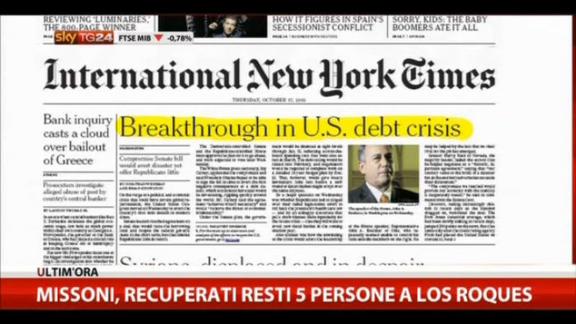 I principali quotidiani esteri di oggi danno risalto all'accordo che il Senato americano ha trovato per evitare il default e all'affaire Leonarda.