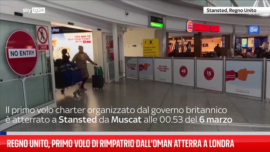 Il primo volo di rimpatrio organizzato dal governo britannico dall’Oman è atterrato all’aeroporto di Stansted, vicino Londra, con cittadini evacuati dal Medio Oriente. Il volo charter da Muscat era stato riprogrammato per problemi operativi. Migliaia di europei restano bloccati negli Stati del Golfo dopo l’escalation militare tra Stati Uniti, Israele e Iran che ha colpito la regione.