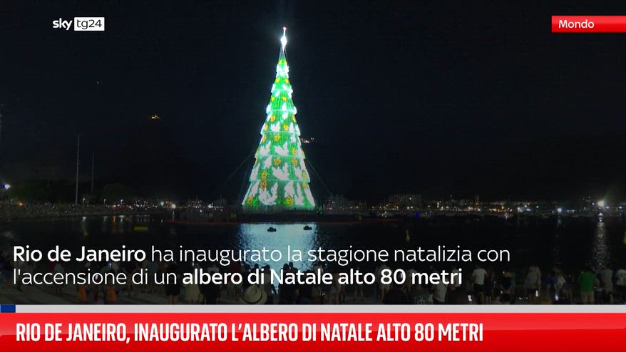 Rio de Janeiro ha inaugurato la stagione natalizia con l'inaugurazione di un albero di Natale alto 80 metri sulla spiaggia di Botafogo.