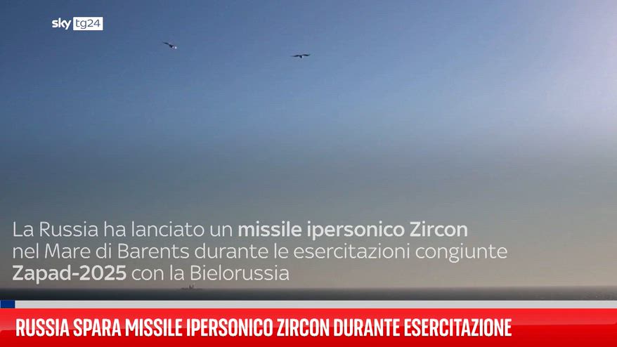 La Russia ha lanciato un missile ipersonico Zircon nel Mare di Barents durante le esercitazioni congiunte “Zapad 2025” con la Bielorussia. I Su-34 hanno condotto attacchi a terra e aerei antisommergibile hanno partecipato. Mosca afferma che le esercitazioni sono difensive, mentre la NATO ha avviato l’operazione “Eastern Sentry” dopo l’incursione di droni russi in Polonia.