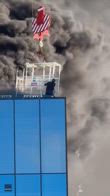 Salvato operaio bloccato su un grattacielo in fiamme