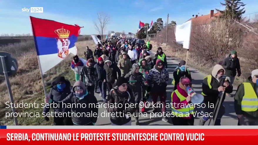 Il 22 febbraio, studenti serbi hanno marciato per oltre 90 km attraverso la provincia settentrionale, diretti a una grande protesta a Vršac. Partiti da Zrenjanin, hanno sventolato bandiere serbe e scandito lo slogan “Keep pumping!”, simbolo delle manifestazioni nate dopo il crollo della stazione di Novi Sad, che ha causato 15 morti. Le proteste, sostenute da insegnanti e agricoltori, rappresentano la sfida più grande al potere di Aleksandar Vučić, che nega le accuse di corruzione.