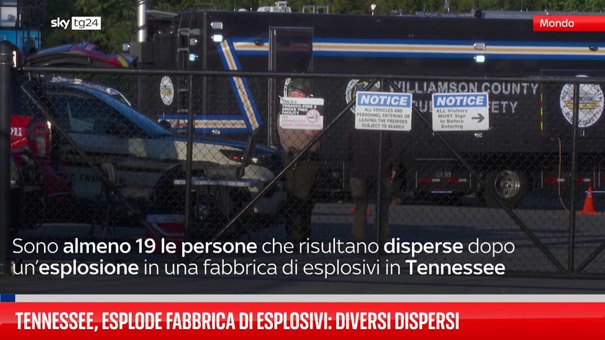 Sono almeno 19 le persone che risultano disperse dopo un’esplosione in una fabbrica di esplosivi in Tennessee. Si temono molte vittime.
