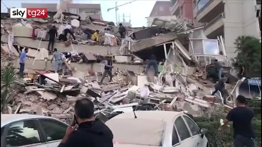 Terremoto nell'Egeo, si cerca tra le macerie in Turchia