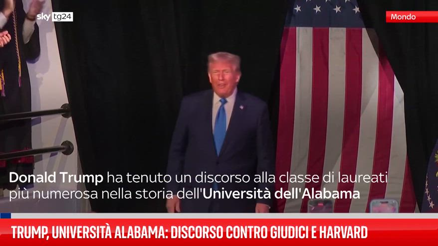 Il presidente Donald Trump ha tenuto un discorso alla classe di laureati più numerosa nella storia dell'Università dell'Alabama. Dichiarazioni anche sulle sfide politiche, tra cui le minacce di impeachment .