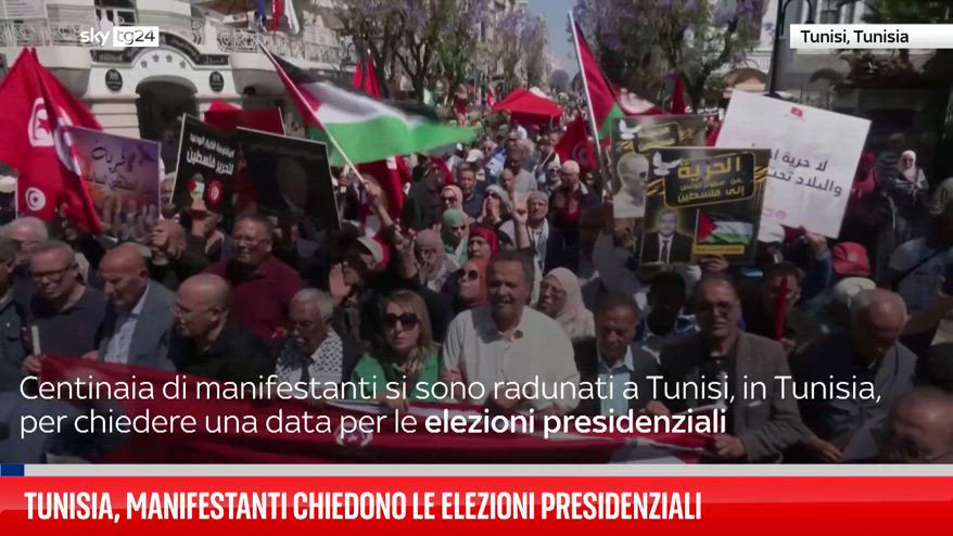 Centinaia di manifestanti si sono riuniti a Tunisi, in Tunisia, per richiedere una data per le elezioni presidenziali, mentre il paese affronta una crisi economica e politica e registra numerosi arresti di giornalisti e oppositori.