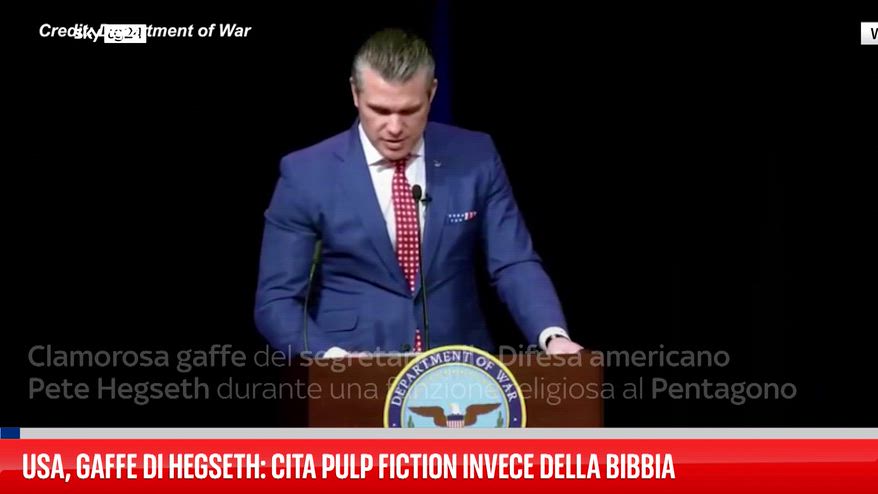 Il segretario alla Difesa americano Pete Hegseth ha recitato durante una funzione religiosa al Pentagono un brano presentato come preghiera militare, citandolo come riferimento a Ezechiele 25:17. Il testo in realtà è però il famoso monologo del sicario interpretato da Samuel L. Jackson nel film “Pulp Fiction” di Quentin Tarantino. Una gaffe diventata subito virale proprio mentre i Democratici hanno presentato una richiesta di impeachment contro Hegseth.