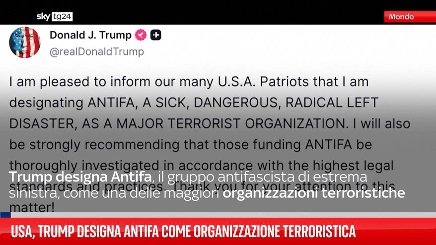 Trump ha dichiarato su Truth Social di aver "designato" il movimento come organizzazione terroristica. .