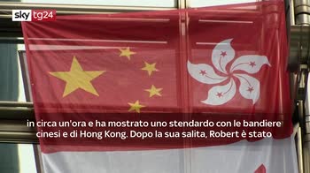 VIDEO Hong Kong, per la pace uomo ragno sale su grattacielo