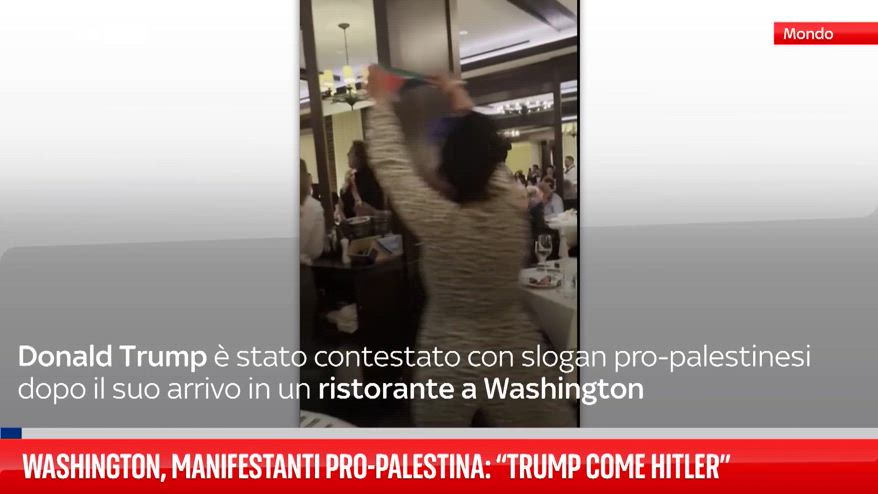 Il presidente Donald Trump è stato contestato con slogan pro-palestinesi dopo il suo arrivo in un ristorante a Washington.