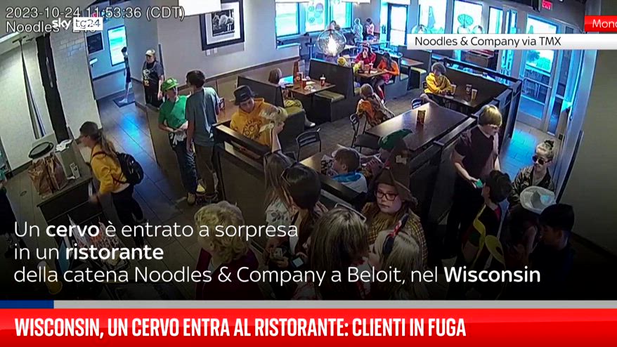 Un cervo è entrato a sorpresa in un ristorante della catena Noodles & Company a Beloit, nel Wisconsin, Stati Uniti, facendo fuggire i clienti. Nessuno è rimasto ferito.