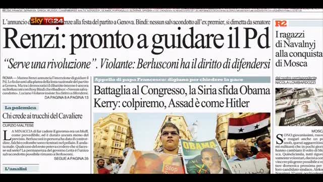La sfida per la guida del PD, la situazione di tensione tra Siria e Usa e il nodo coperture per il decreto Imu sulle pagine dei quotidiani di oggi.