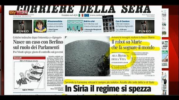 Diversi i temi che troviamo sulle prime pagine nazionali: dalle olimpiadi alla politica, ma si parla anche di estero con Siria e la missone della NASA.