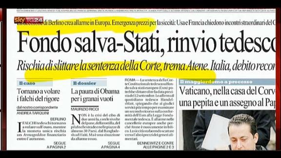 Le prime pagine di oggi lanciano l'emergenza prezzi del cibo per la siccità e l'allarme del Fondo salva-Stati in Europa.