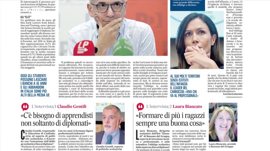 La scuola è uno degli argomenti che maggiormente dividono i partiti politici in campagna elettorale, tutto è nato dalla proposta di Letta formulata al meeting di Rimini di una scuola dell'obbligo da 3 a 18 anni. Una proposta che è stata presa con qualche mugugno dalla stessa platea del Meeting e anche con qualche contestazione. E poi si è aperto il dibattito fra Centro-Destra e Centro-Sinistra sull'opportunità di cambiare l'obbligatorietà del sistema scolastico italiano, con alcuni titoli dei giornali ad esempio il Corriere della Sera che sottolinea: "Letta sotto attacco su questa proposta" ma lo stesso Letta sottolinea che l'obbligo è fondamentale. Tante critiche alla proposta con la Carfagna che parla di stile sovietico. I DEM tengono il punto perché "Questa è un'opportunità per combattere le disuguaglianze" e poi ci sono diverse reazioni politiche come quelle di Calenda che sottolinea: "Va bene l'obbligo scolastico fino a 18 anni ma quello a partire dai 3 è inutile". Questo quanto ci racconta il Corriere della Sera. E poi ovviamente ci sono diversi approfondimenti con altre reazioni non solo quelle dei partiti politici, ma anche quelle delle imprese. Per quanto riguarda invece i partiti politici a parlare è anche la Carfagna che oltre allo "stile sovietico", spiega il motivo delle sue parole, perché al sud molti territori sono senza istituti dell'infanzia, mentre Salvini per quanto riguarda l'obbligatorietà fino a 18 anni parla invece dell'importanza degli istituti tecnici, quindi del fatto che così com'è l'obbligatorietà quindi fino ai 16 anni, va bene. "Oggi gli studenti, ve lo ricordo, possono lasciare i banchi a 16 anni e gli abbandoni e questo è un problema atavico della scuola italiana sono più alti della media Europea". Ancora vi faccio vedere lo scontro sulla scuola e altre dichiarazioni come ad esempio quelle del Presidente dell'Associazione Nazionale Presidi Antonello Giannelli: "Un'attenzione sempre sempre maggiore nei confronti dell'infanzia è funzionale alla crescita dei giovani". E poi ci sono anche le situazioni dei vari Paesi come la Francia, come il Regno Unito, come i Paesi Bassi. In Francia ad esempio l'età della scuola dell'obbligo è stata abbassata da 6 a 3 anni il che significa che la frequenza dell'asilo alla scuola di infanzia è diventata obbligatoria, nel Regno Unito l'obbligo scolastico dura dai 5 ai 18 anni, nei Paesi Bassi l'istruzione è obbligatoria fra i 5 e i 16 anni. Quindi ognuno ha il suo metodo. A conclusione vi faccio notare che come dice la Repubblica, mezza Europa adotta quella che di fatto è la proposta di Letta: "In mezza Europa è già realtà" questo quanto accade, e la stessa Repubblica ci mostra appunto quali sono le ricette di tutti i partiti politici, dal PD alla Lega.