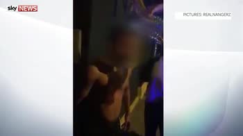 A man is doused with water by police after having acid thrown in his face in one of a series of five attacks in east London.