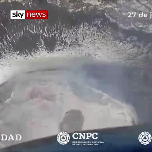 Aerial footage shows moment the Popocatepetl volcano spewing smoke and ash into the sky.
