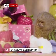 Baby marmosets enjoy a birthday feast