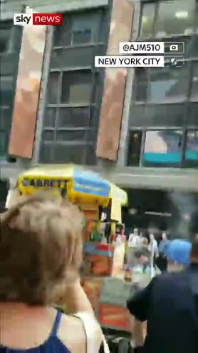 Thousands of bees swarmed around a hot dog stand in Times Square.