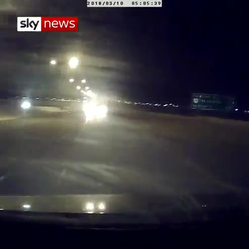 Police in Alberta, Canada, said they charged a man with impaired driving after his vehicle was filmed colliding with another car while travelling the wrong way down a motorway.