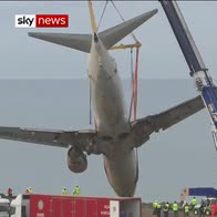 Engineers in Turkey are lifting off a plane from the shore of the Black Sea, after it skidded off the runway.