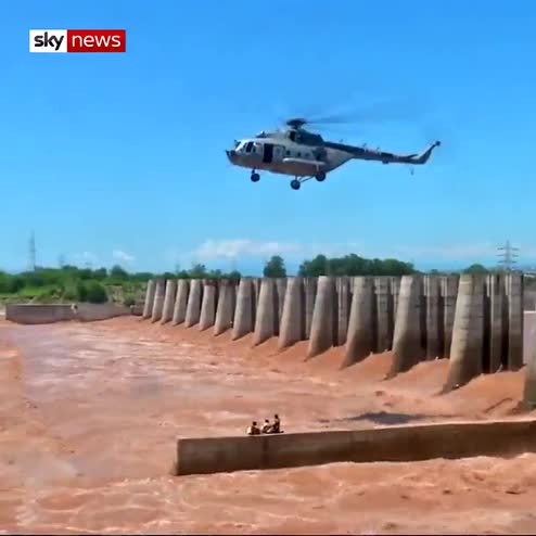 Indian Air Force officials rescued two fishermen left stranded on the Tawi river following a sudden increase in the water level.
