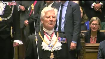 Dennis Skinner delivered his traditional heckle at the Queen's Speech as he joked about the Queen's planned attendance at Ascot.
