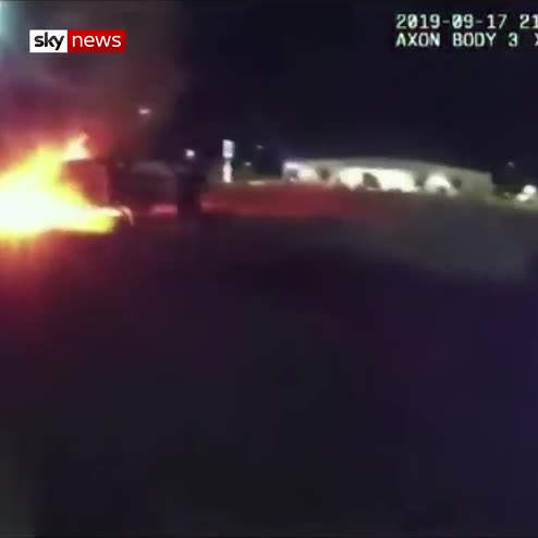 Body camera shows the moment of the blast as officers run to help two people, a 63-year-old man and 59-year-old woman, to safety.