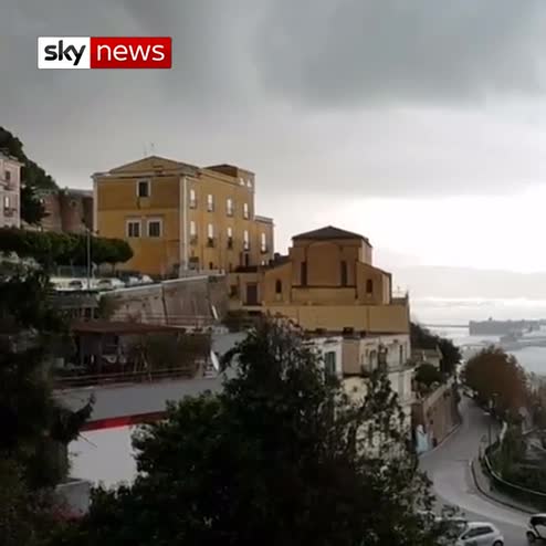 A waterspout caused havoc at a port in southern Italy, overturning shipping containers and sending others into the water.