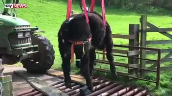 A specialist team from Devon and Somerset Fire Service successfully hoisted out a cow that was trapped in a cattle grid.