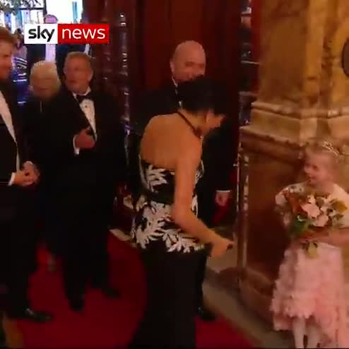 The Duke and Duchess of Sussex met members of Take That as they attended the Royal Variety Performance in London.