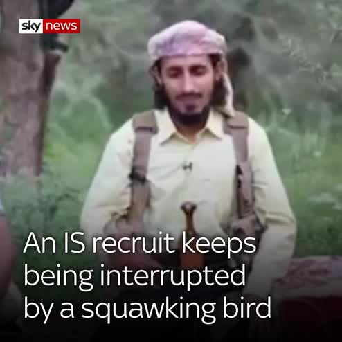 A video has been released of an IS recruit being interrupted by a squawking bird.