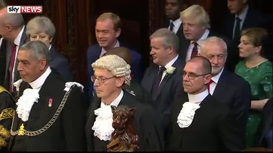 Jeremy Corbyn refuses the customary nod to Her Majesty and then can be seen apparently 'winking' to a colleague prior to Queen's Speech.