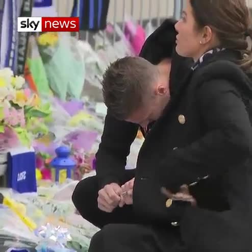 The England and Leicester City player placed a tribute outside the stadium accompanied by his wife Rebekah.