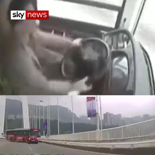 Footage from on-board a bus in China has revealed a confrontation was responsible for the bus crashing over a bridge.