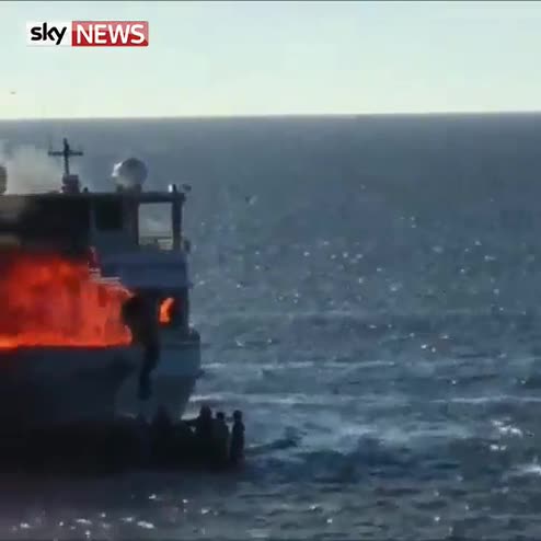 Video has been released of people jumping overboard to escape a fire on a casino shuttle boat off Florida, in which a woman died.