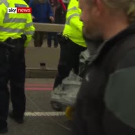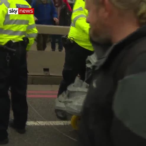 Extinction Rebellion protesters attempted to march a large steel bust along Lambeth Bridge.